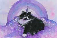 Archival 4x6" 340 gsm, 100% cotton giclée print of my kitty unicorn aka 'Magical Floof' watercolor painting