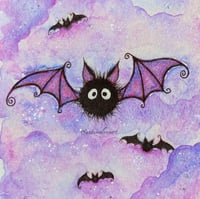 Archival 6x6" 340 gsm, 100% cotton giclée print of my 'Soot Bat' watercolor painting inspired by those cute sprites & my very own 'Batty Cat'